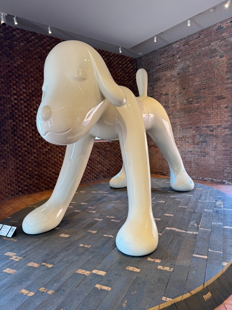いまも美術館のエントランスには、奈良が感謝を込めて贈った白い犬の彫刻《 A to Z Memorial Dog 》が来館者を迎えている。